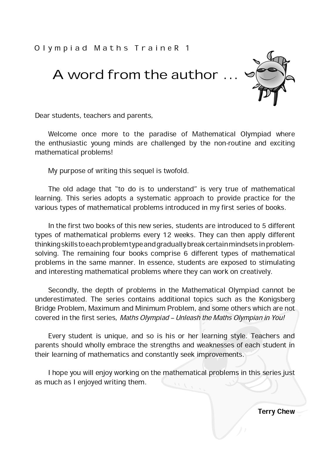 In the first two books of this new series, students are introduced to 5 different types of mathematical problems every 12 weeks. They can then apply different thinking skills to each problem type and gradually break certain mindsets in problem-solving. The remaining four books comprise 6 different types of mathematical problems in the same manner. In essence, students are exposed to stimulating and interesting mathematical problems where they can work on creatively.